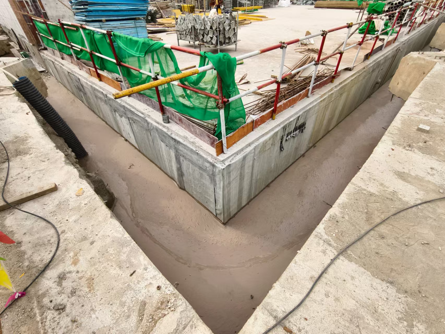 4、深基礎施工完成后肥槽部位的回填一直是施工的控制重點和難點,采用預拌流態(tài)固化土,利用其流動性和強度可將該問題解決。