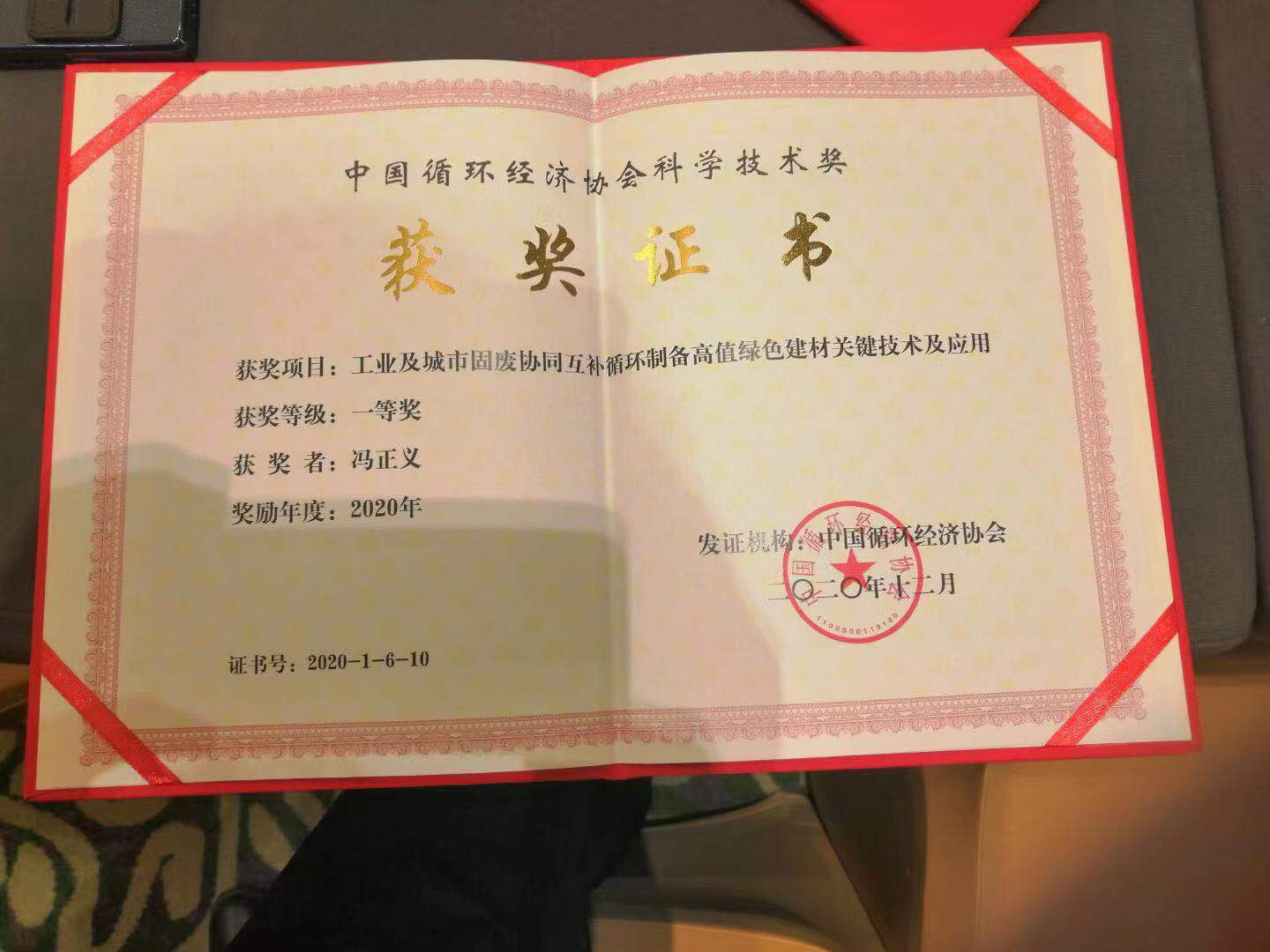 2021年6月2日中國循環(huán)經(jīng)濟(jì)協(xié)會主辦“2021全國循環(huán)經(jīng)濟(jì)科技創(chuàng)新大會——大宗工業(yè)固廢循環(huán)利用研討會”在山東青島正式召開!對2020年在循環(huán)經(jīng)濟(jì)科技創(chuàng)新中做出貢獻(xiàn)的單位和個(gè)人進(jìn)行表彰。山東江泰建材科技有限公司及公司董事長馮正義分別獲得“工業(yè)及城市固廢協(xié)同互補(bǔ)循環(huán)制備綠色建材關(guān)鍵技術(shù)及應(yīng)用”項(xiàng)目的單位及個(gè)人一等獎(jiǎng)!