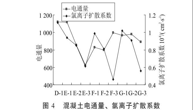 混凝土耐久性方面,從電通量或氯離子擴(kuò)散系數(shù)看,S115-15超細(xì)礦粉對(duì)混凝土耐久性更有利。建議采用S115-15超細(xì)礦粉配制普通混凝土,由于S115-15超細(xì)礦粉摻量對(duì)混凝土抗壓強(qiáng)度影響不大,建議摻量為10%~20%。
