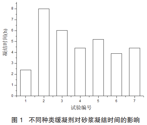 砂漿的經(jīng)時(shí)損失與使用場景、季節(jié)及溫度高度相關(guān)。在配制砂漿的過程中,需要結(jié)合緩凝劑的抗凝工作特性,選擇恰當(dāng)?shù)木從齽┓N類與摻量。本文在配合比、成型條件不變的前提下,試驗(yàn)考察了不同緩凝劑種類對砂漿工作性能的影響,試驗(yàn)結(jié)果為工程應(yīng)用提供技術(shù)參考。