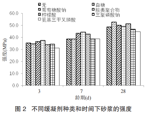 2.1.3 不同種類緩凝劑對砂漿抗壓強(qiáng)度的影響