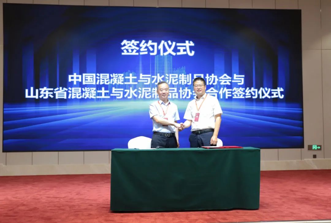 中國混凝土與水泥制品協(xié)會執(zhí)行會長吳文貴、山東省混凝土與水泥制品協(xié)會會長裴紹忠簽約