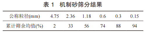 試驗表明,在混凝土應(yīng)用中,機制砂細度模數(shù)應(yīng)在3.0~3.8之間。細度模數(shù)每增加0.2,配合比中砂率就應(yīng)提高1%~2%。