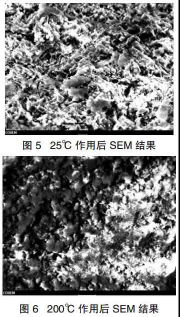 本試驗(yàn)采用了 SEM 掃描電鏡對(duì)不同溫度作用后的微?;炷吝M(jìn)行了微觀分析。分別從 8 組不同溫度作用后的微?;炷猎噳K中切取鱗片狀混凝土片進(jìn)行 SEM 試驗(yàn),圖 5、圖 6 分別為放大×2000 倍 25℃ 與 200℃ 下的微觀掃面結(jié)果。