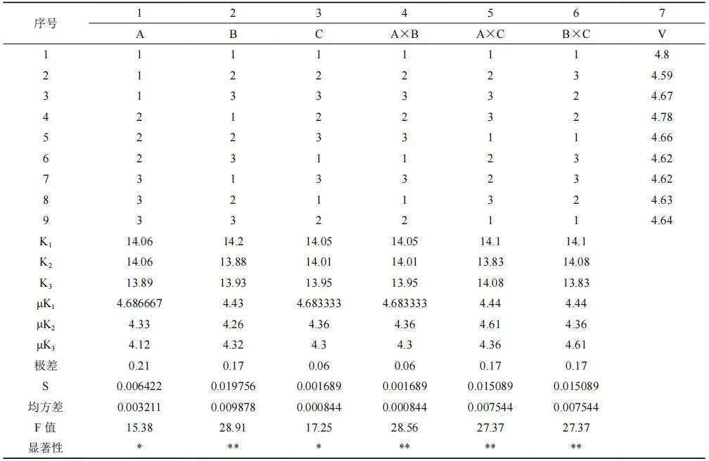 表 1 正交設(shè)計(jì)表