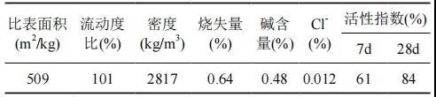 礦粉選用峨眉山宏源資源循環(huán)開發(fā)有限公司 S75 級礦粉,其性能如表 3 所示。