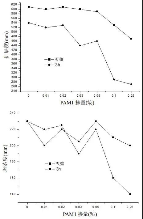 (5)陰離子分子量為 800 萬的聚丙烯酰胺摻入會影響泵送劑摻量及混凝土和易性。