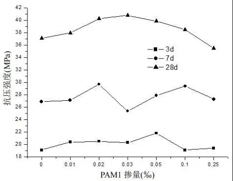 圖 4 PAM1 不同摻量混凝土強度