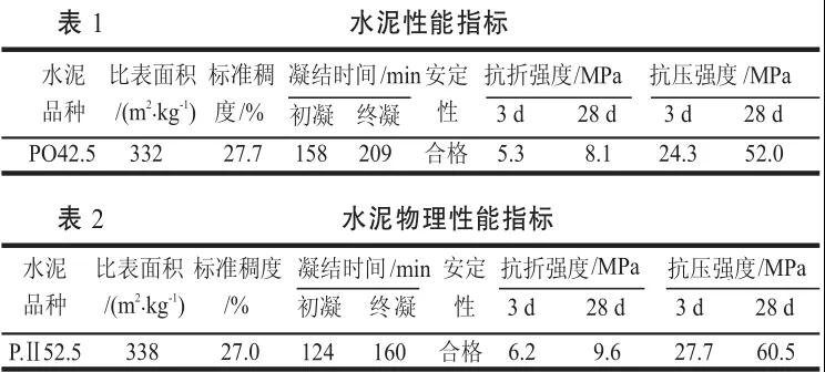 (1)水泥:采用上海海豹水泥(集團(tuán))有限公司提供PO42.5水泥,具體指標(biāo)見(jiàn)表1。安徽海螺水泥股份有限公司提供PⅡ52.5水泥,具體質(zhì)量指標(biāo)見(jiàn)表2。