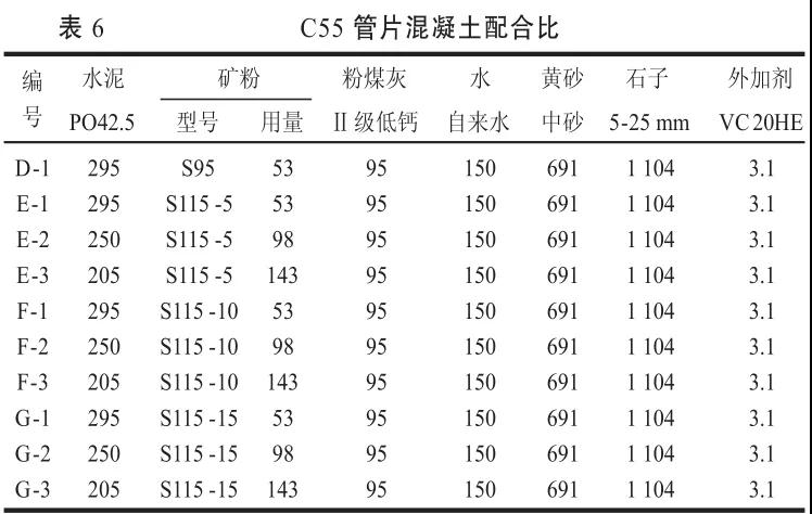 2.3 C55管片混凝土試驗(yàn)配合比及結(jié)果分析