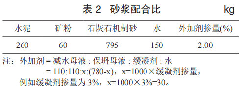 細(xì)骨料:石灰石碎石破碎的機(jī)制砂,細(xì)度模數(shù)值 2.8,MB 值 1.5,含粉量 10.2%。