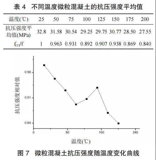 (3)微?;炷恋牧⒎襟w抗壓強(qiáng)度隨溫度升高總體呈現(xiàn)下降趨勢,但在 100~150℃ 之間強(qiáng)度有明顯的回升現(xiàn)象,與普通混凝土抗壓強(qiáng)度隨溫度變化的規(guī)律較為類似。