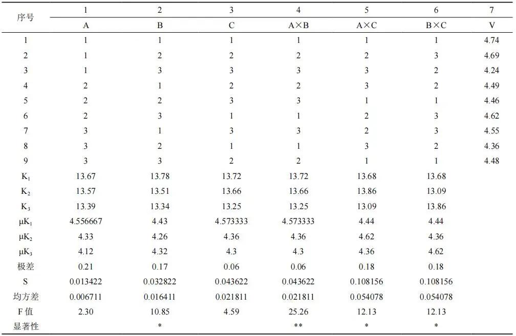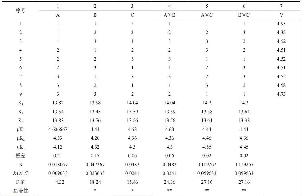 表 1 正交設(shè)計(jì)表