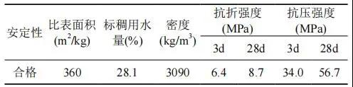 表 1 水泥的物理力學(xué)性能