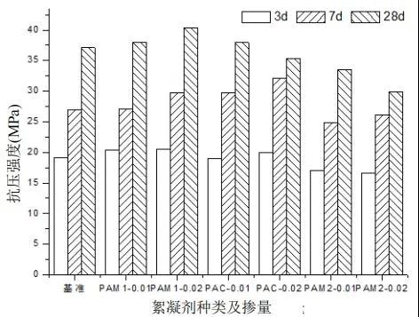 (2)低摻量的絮凝劑能夠提高混凝土的粘聚性及強度。