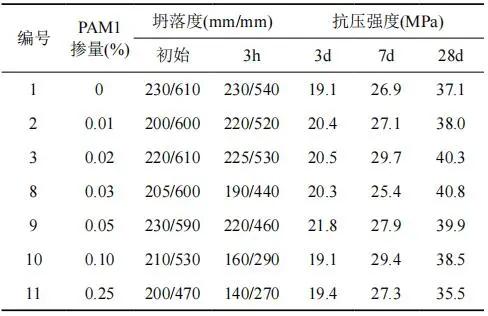 表 7 不同摻量 PAM1 試驗結(jié)果