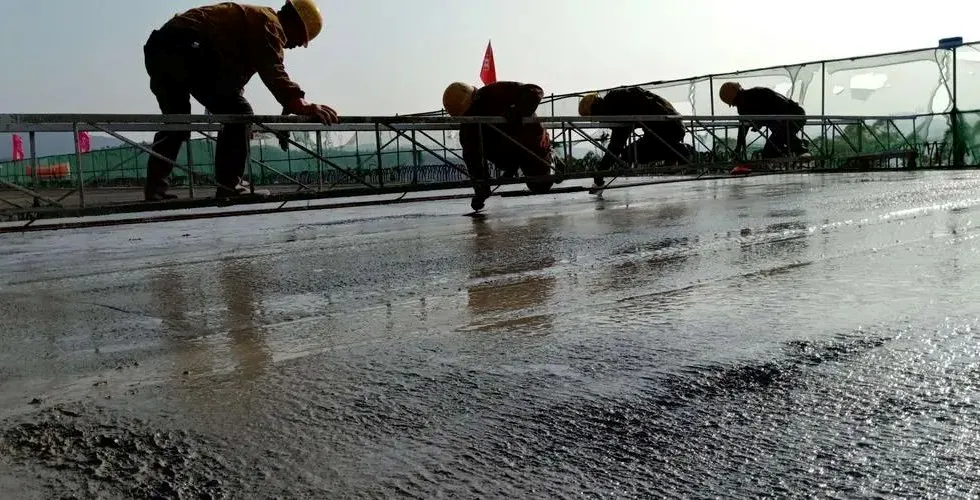 進(jìn)一步來說,在混凝土澆筑的過程中,如果遇到雨水沖刷或者空氣濕度較大導(dǎo)致混凝土表面出現(xiàn)大量泌水的情況,可以采取一定的應(yīng)急措施。例如,在混凝土表面均勻撒布干水泥,并使用鐵筢子來回拉幾遍,使其與混凝土表面充分接觸。隨后,通過抹壓工序使水泥粉與混凝土更好地結(jié)合,從而有效應(yīng)對泌水問題。